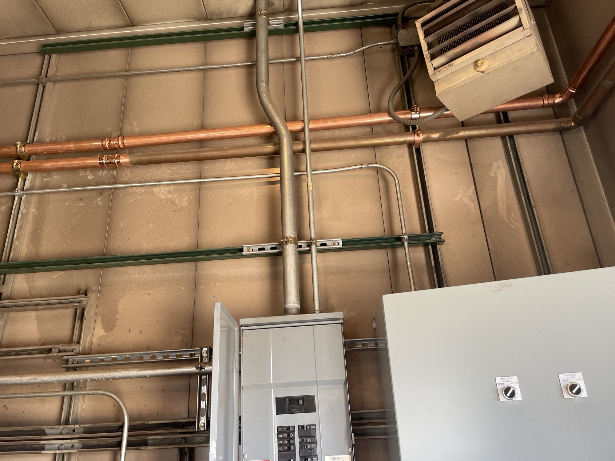 Installed power controls and electrical systems for compressed air equipment at a BNSF maintenance facility with